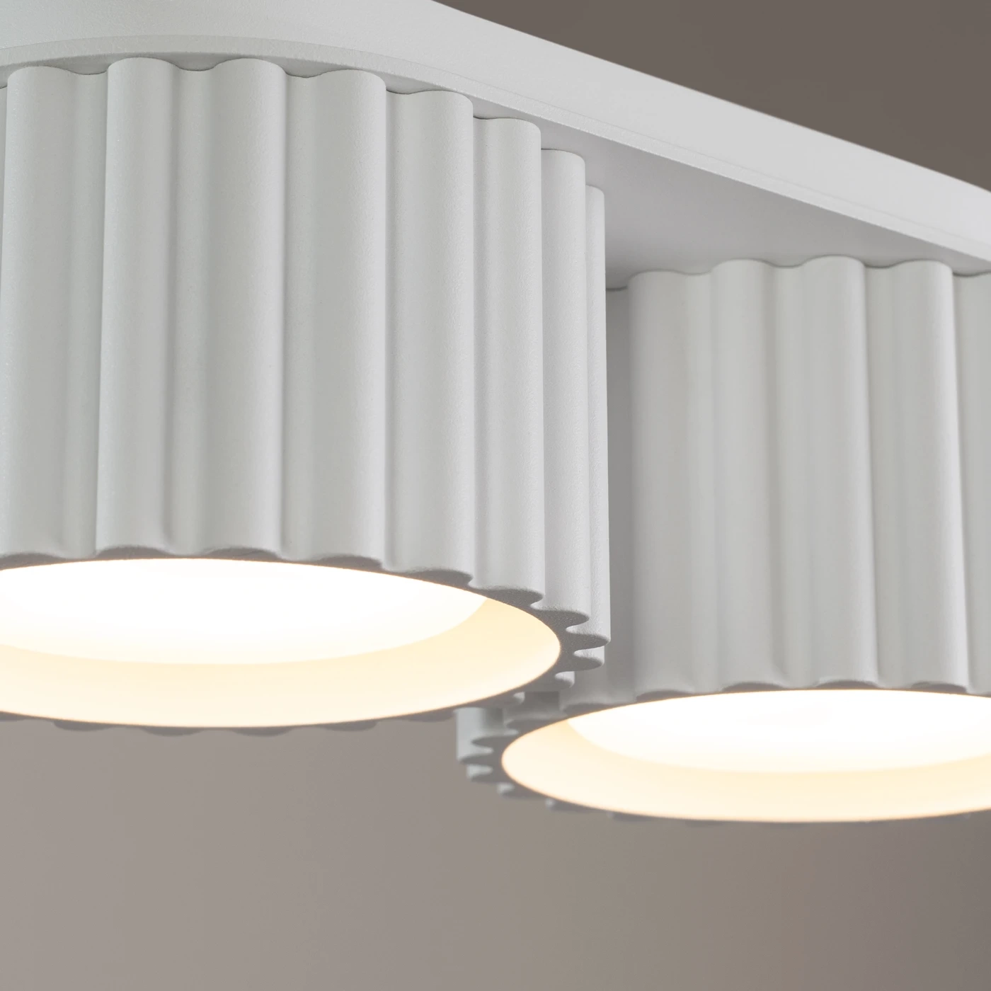 AURA es una colección de lámparas con una forma única inspirada en la arquitectura y la geometría. La característica superficie acanalada de las pantallas atrae la atención y las convierte no solo en una fuente de luz, sino también en un elemento decorativo distintivo en el interior.