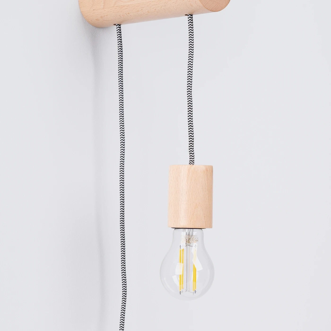 La lámpara de chimenea NIMBI es una combinación perfecta entre diseño moderno y materiales naturales. La carcasa de madera, combinada con el cable trenzado, crea un efecto visual único que combinará perfectamente con interiores modernos y escandinavos.