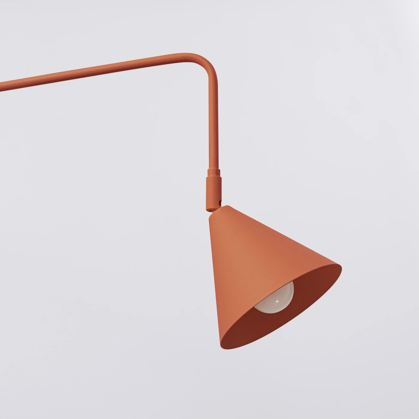 NOX es una lámpara de pared moderna con una forma excepcionalmente ligera y un carácter distintivo. El sencillo brazo de metal que termina con una pantalla cónica y geométrica crea una composición intrigante que funciona muy bien en arreglos modernos, escandinavos o industriales.