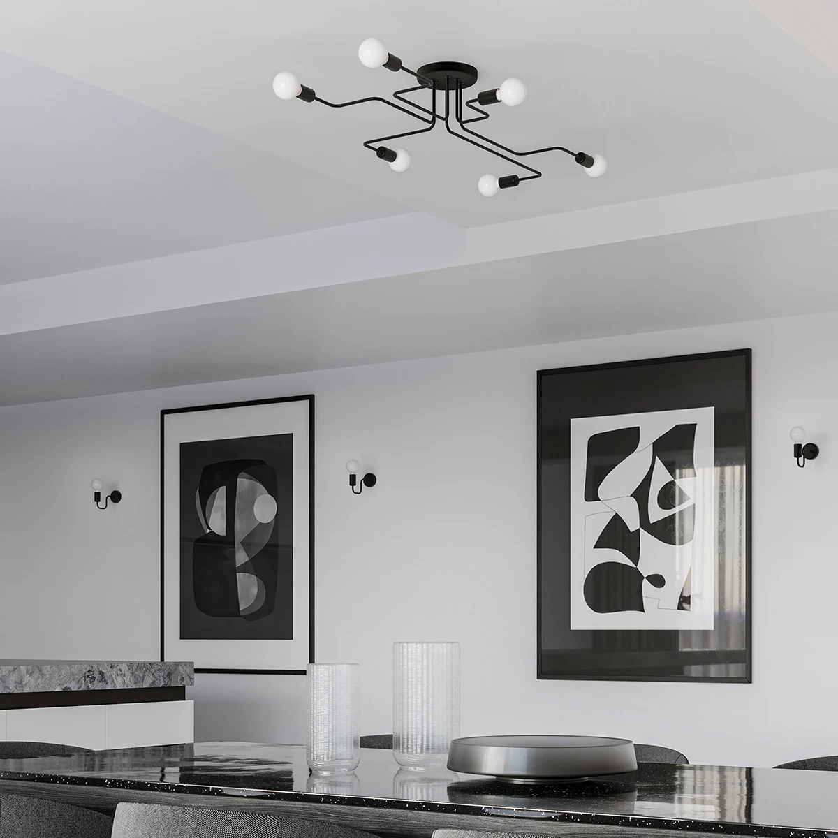 ¡Y todo dentro de una misma serie de productos! La colección VECTOR incluye lámparas de araña en varias versiones (con 4, 6 y 8 puntos de luz) y apliques. ¡Un conjunto así iluminará con éxito cualquier espacio! Elija la versión de la lámpara de araña según el tamaño de la habitación o cree una disposición de varias lámparas. Y la lámpara de pared será perfecta como luz de noche.