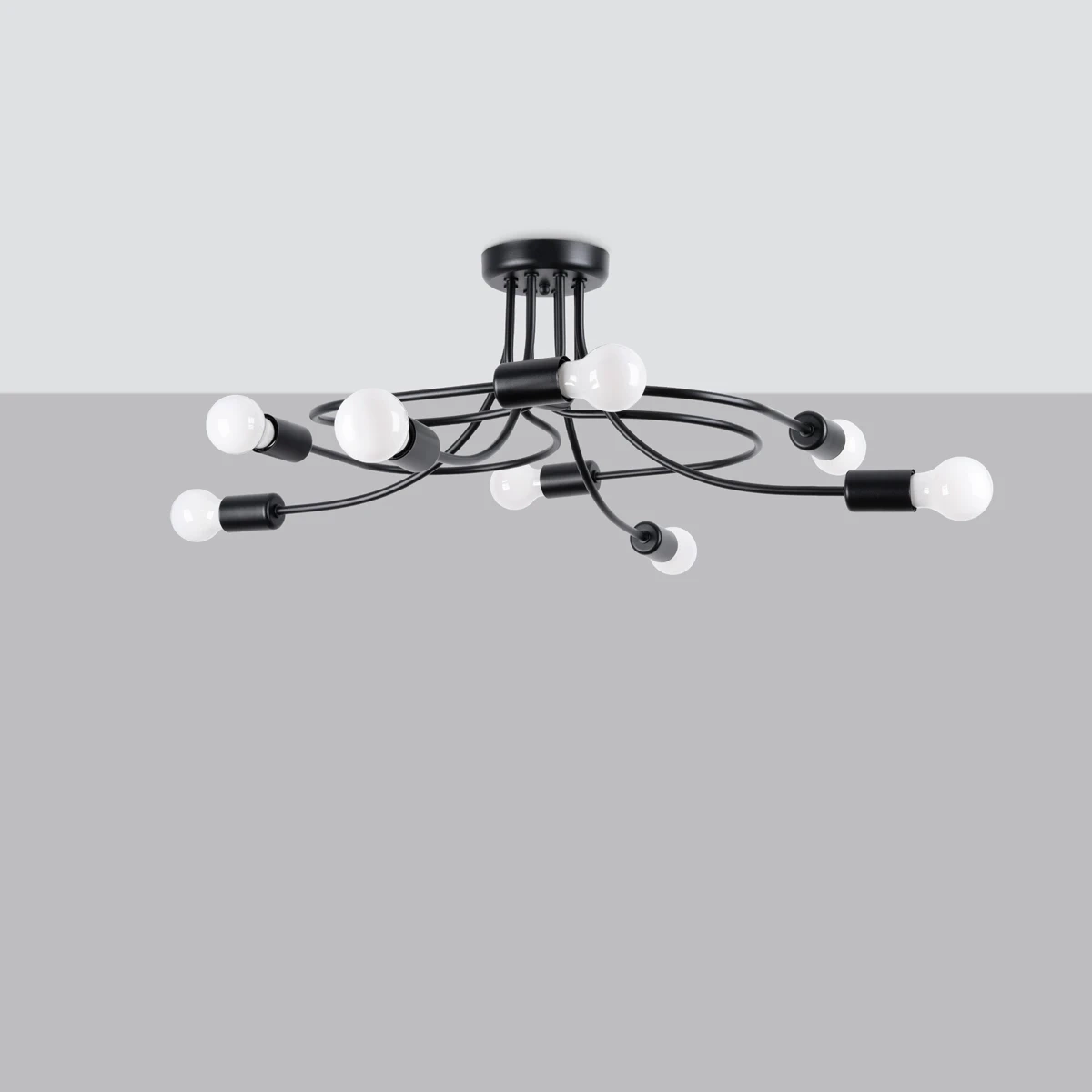 La lámpara LEVAR llama la atención con su forma inusual, y su diseño será apreciado por cualquier amante de la vanguardia. Los brazos intrincadamente enredados de la lámpara de techo crean una composición única que se convertirá en el punto focal de la decoración.