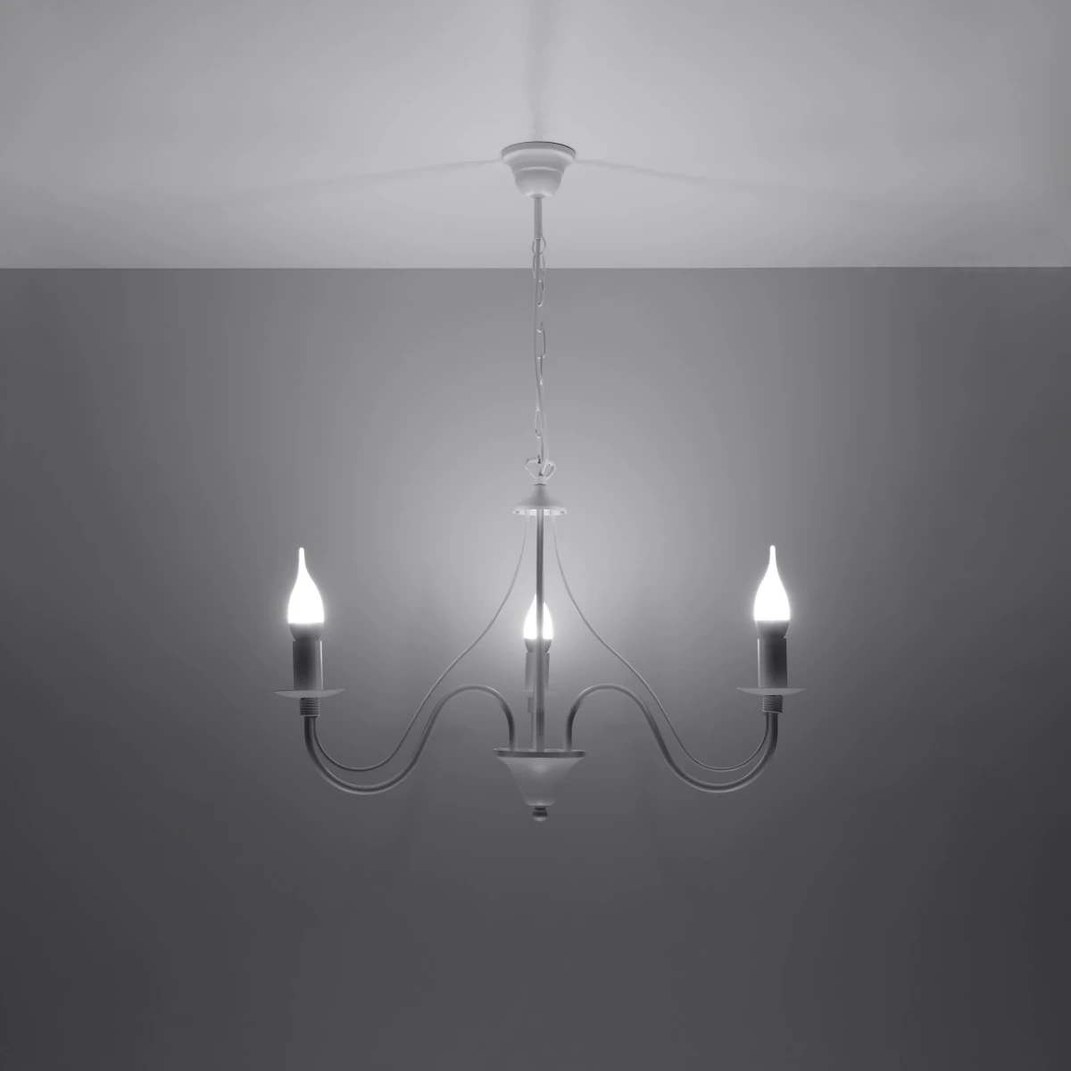 Las ricas decoraciones, los brazos elegantemente curvados y las bombillas en forma de llama crean una atmósfera de glamour única. Gracias a su rico diseño, esta lámpara puede convertirse con éxito en la decoración principal de la habitación.
