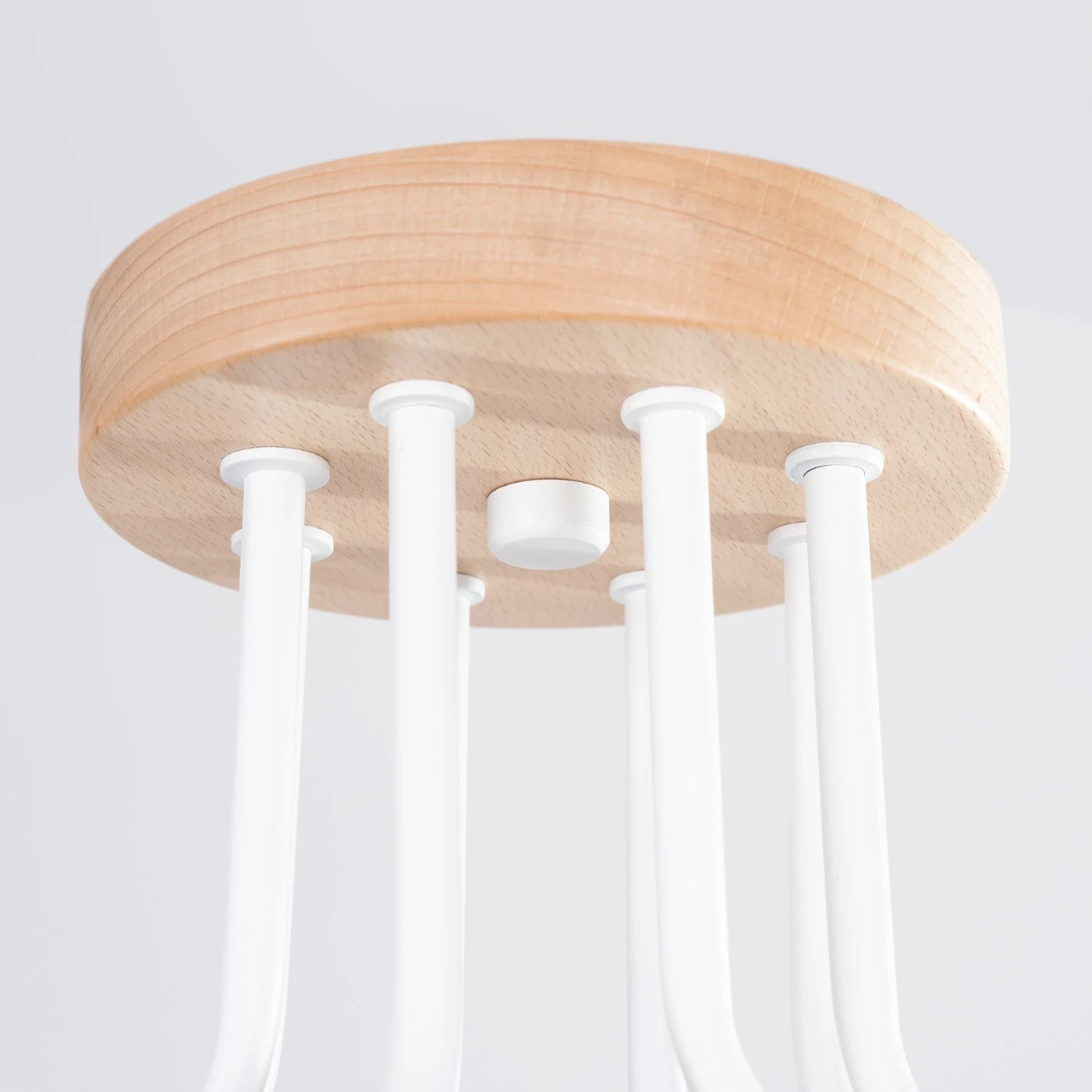 La lámpara TIMBO es una propuesta moderna para aquellos que aprecian una combinación única de elegancia y funcionalidad. Disponible como lámpara de araña con seis u ocho brazos, así como en versión aplique, ofrece no sólo una variedad de fuentes de luz, sino también la posibilidad de elegir entre dos elegantes colores: el negro atemporal y el blanco sutil. Los elementos de madera y metal de alta calidad realzan el diseño sofisticado, que encaja perfectamente en cualquier interior.