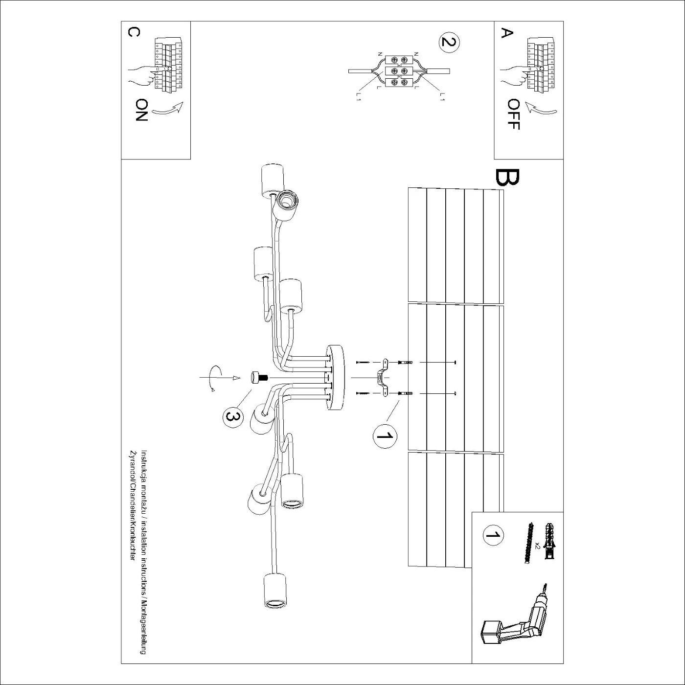 Dependiendo del versión - lámpara de pared o lámpara de araña con seis u ocho brazos - TIMBO proporciona la iluminación perfecta en cualquier habitación. La posibilidad de utilizar bombillas E27 intercambiables permite total libertad en la elección del flujo luminoso y el color, permitiendo crear el ambiente perfecto.