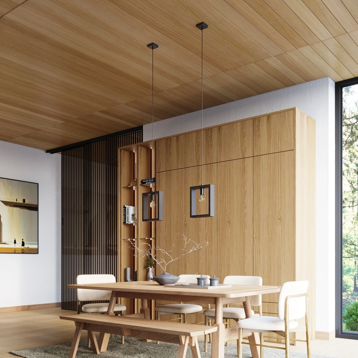 Un símbolo de elegancia sencilla entre las piezas de iluminación modernas es la lámpara ARIES. Sus líneas limpias y su cálido acabado en madera natural la convierten en un acento único en cualquier espacio, introduciendo un elemento de calma y acogimiento que fomenta el descanso y la relajación.
