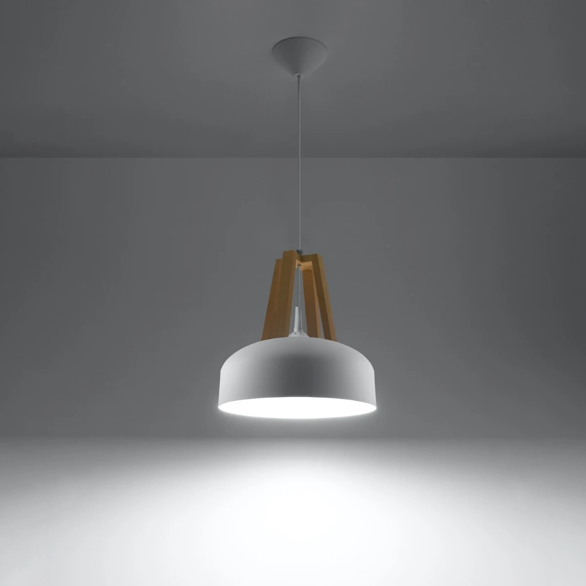 Lámpara colgante CASCO blanco/madera natural