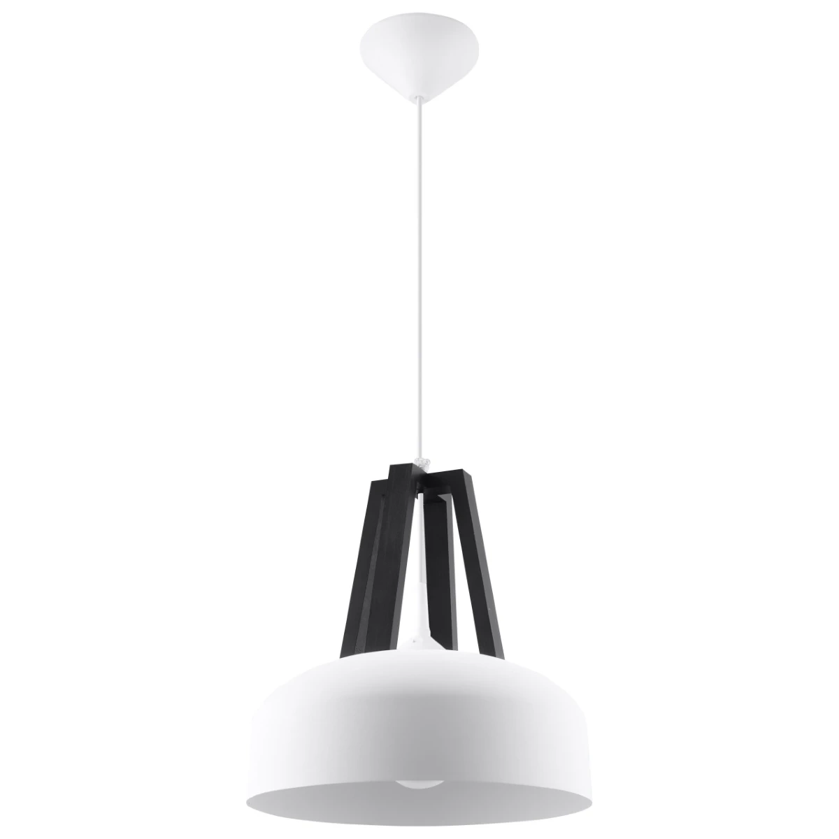 Pantalla negra o blanca con un acento de madera: el diseño de nuestra moderna lámpara colgante pide paso en un interior elegante. Se instala rápidamente, creando un ambiente único.