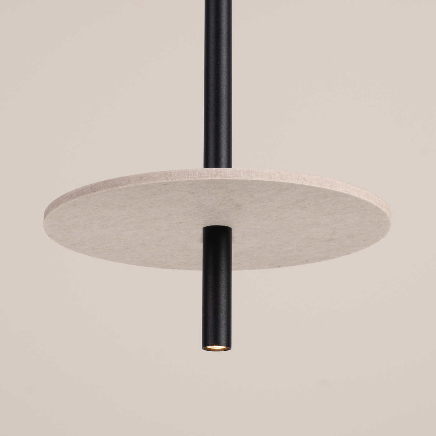 FELTRO es una lámpara que combina estética con funcionalidad. El disco de fieltro es un elemento decorativo llamativo, y el tubo de acero permite un ajuste flexible de la altura, lo que hace que la lámpara sea adecuada para cualquier habitación, independientemente de su tamaño.