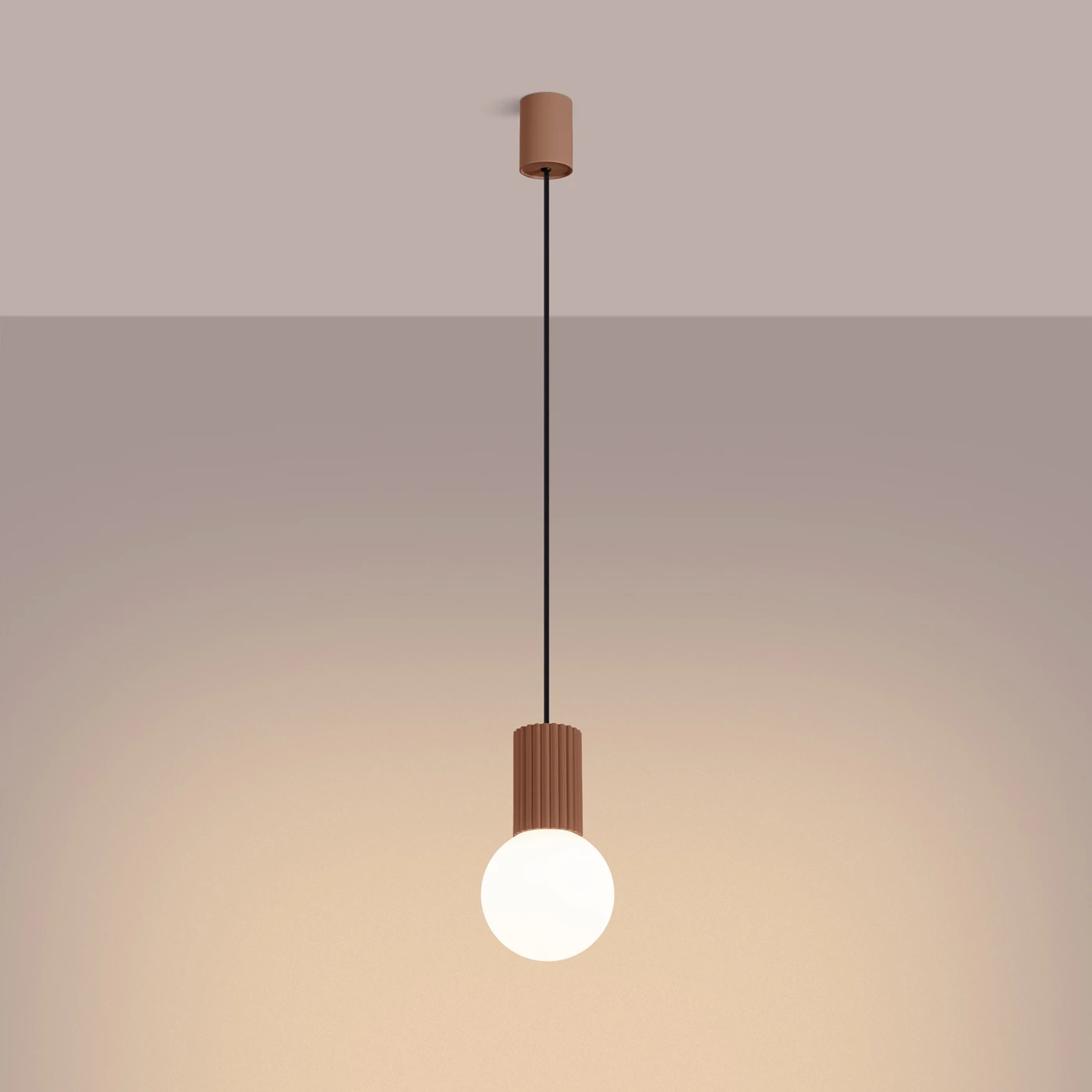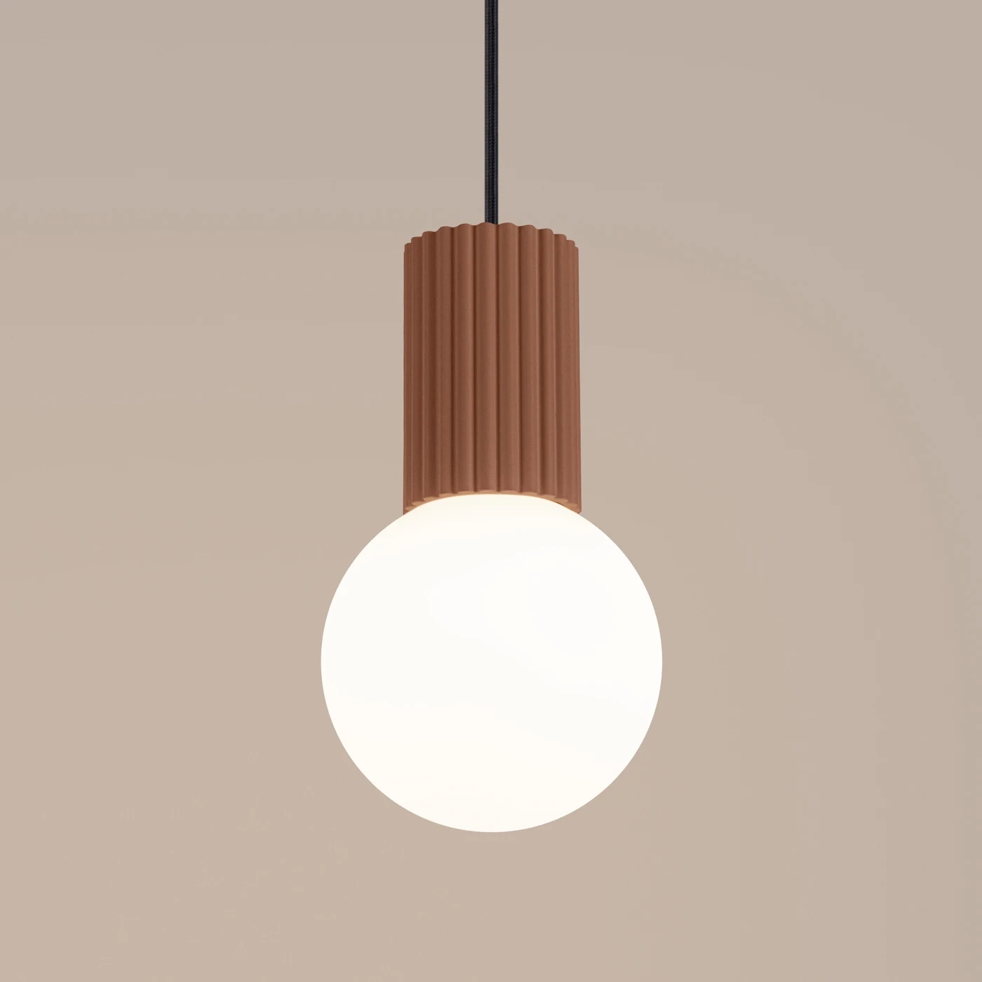 HALO es una prueba de que la forma minimalista no tiene por qué ser aburrida. Su cuerpo con un característico acabado estriado introduce un sutil detalle que llama la atención. El acabado mate y el globo de cristal de leche crean un dúo armonioso que se adapta tanto a interiores modernos como escandinavos y más artísticos o retro.
