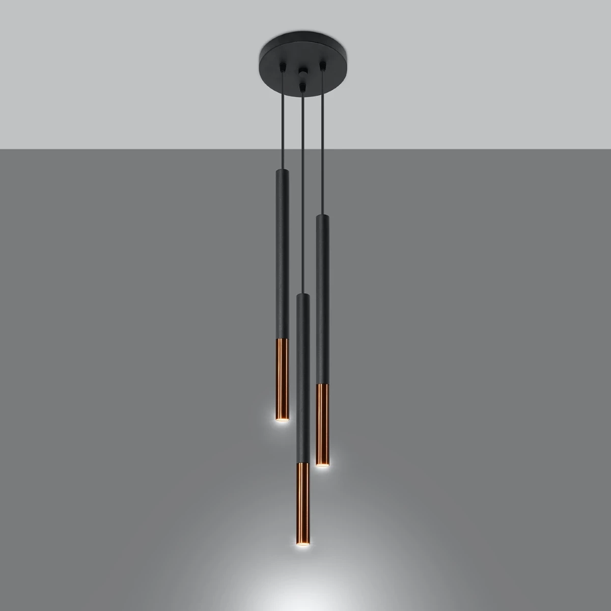 Ajuste el número de puntos de luz a su interior. Puede obtener la lámpara colgante MOZAICA en tres variantes: con una o tres pantallas dispuestas linealmente o en triángulo.