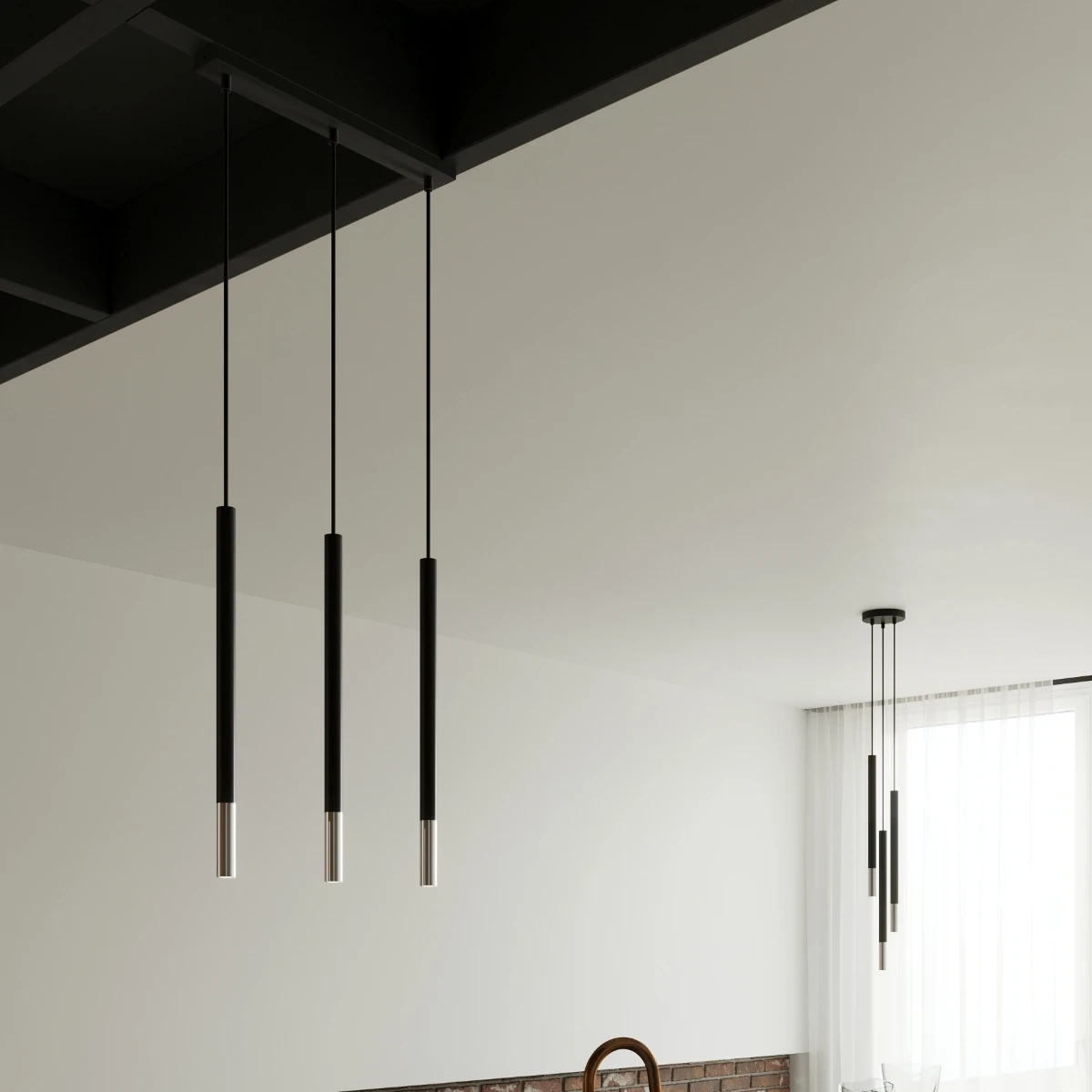 Ajuste el número de puntos de luz a su interior. Puede obtener la lámpara colgante MOZAICA en tres variantes: con una o tres pantallas dispuestas linealmente o en triángulo.