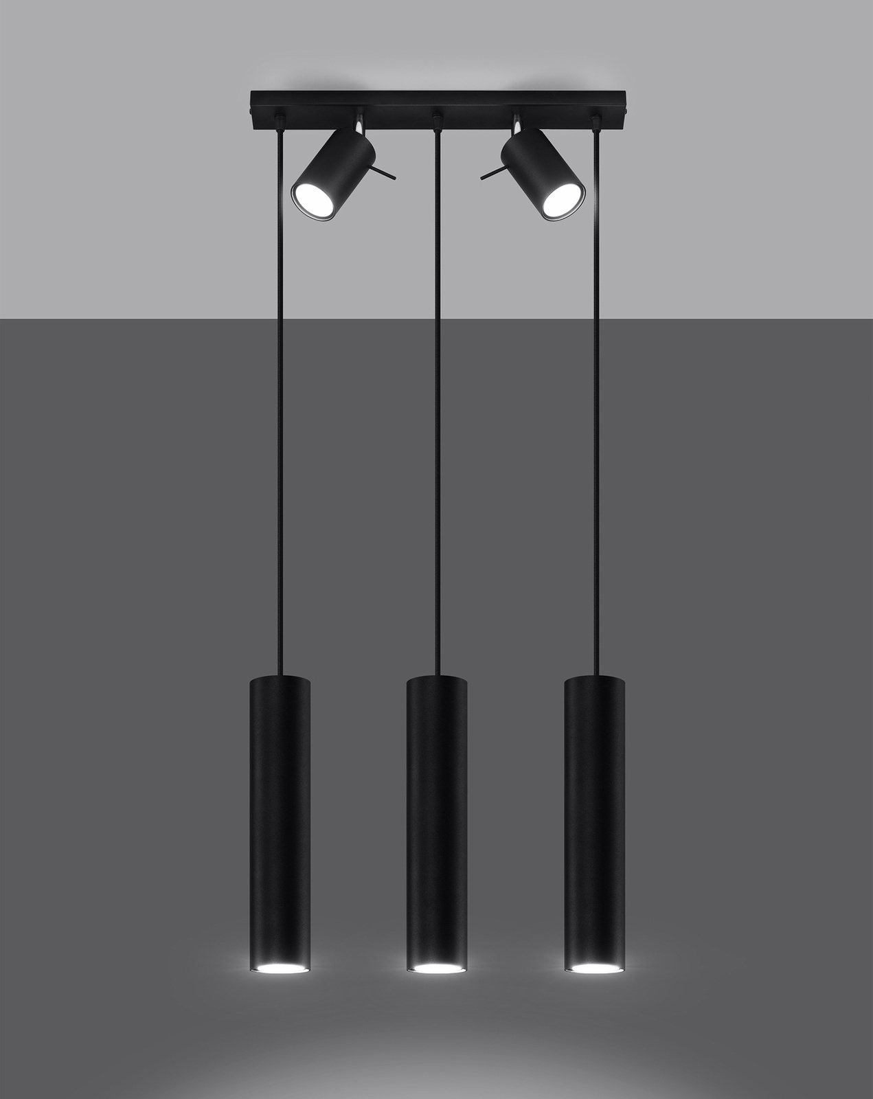 Lámpara colgante RING 3 negra + 5x bombilla LED GU-10 4000K Fría 7W 630lm