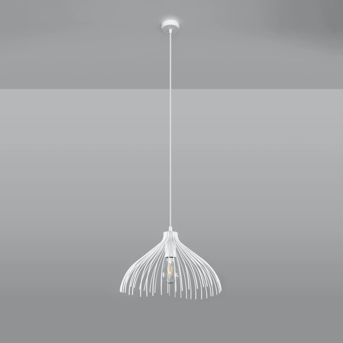 Añade un ambiente industrial a tu hogar con la lámpara colgante UMB. La bombilla oculta en dos pantallas de alambre distribuye uniformemente la luz a la vez que crea una interesante sombra en la pared.