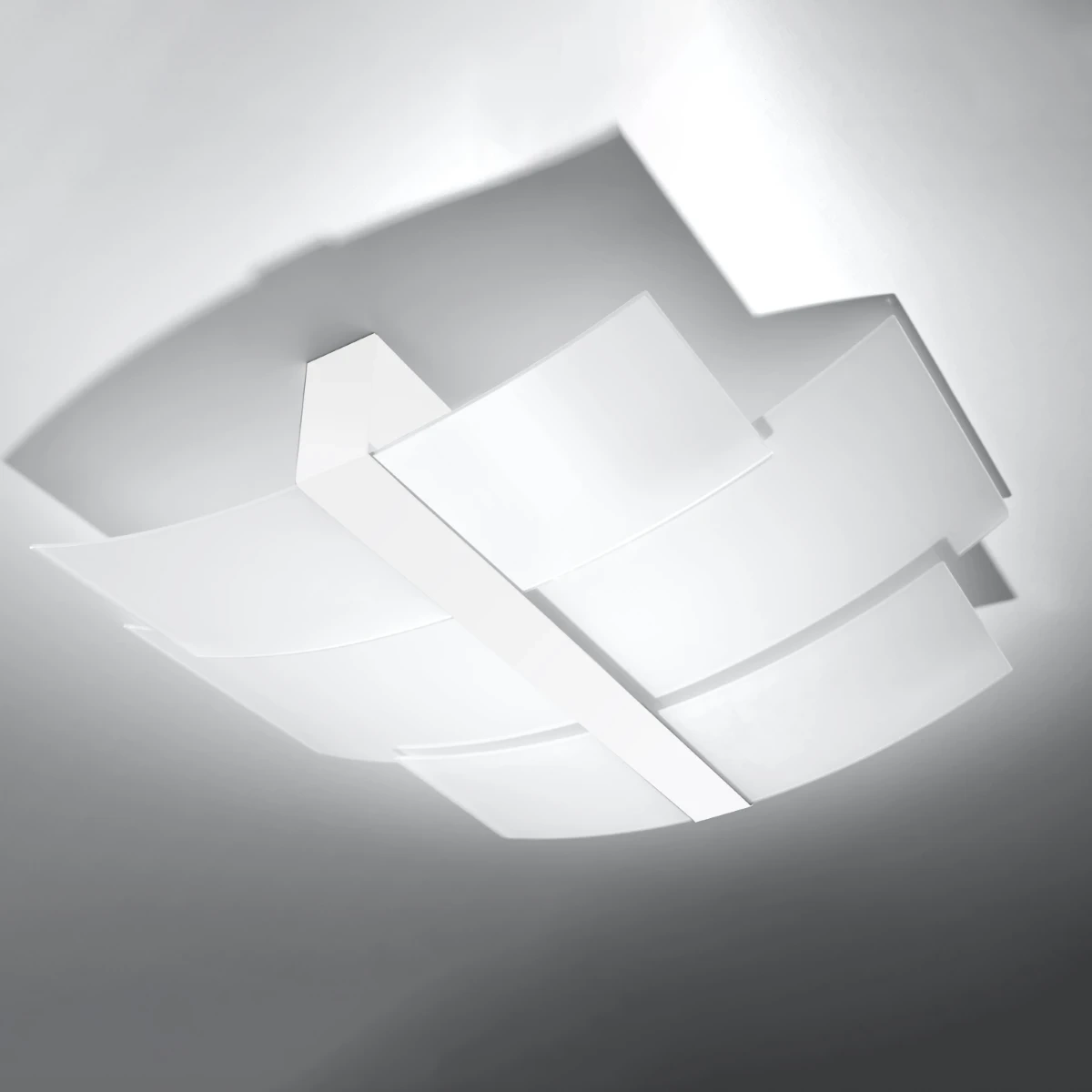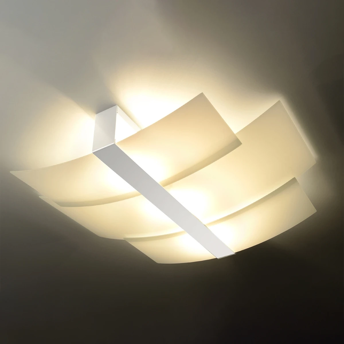 Una funcional lámpara de techo de cristal blanco es una propuesta para interiores modernos y elegantes. La combinación de blanco y acero es una conexión interesante, a veces cruda. Sin embargo, esta impresión desaparece cuando se enciende la lámpara: el cristal blanco resalta maravillosamente la luz, cautivándole con su aspecto.