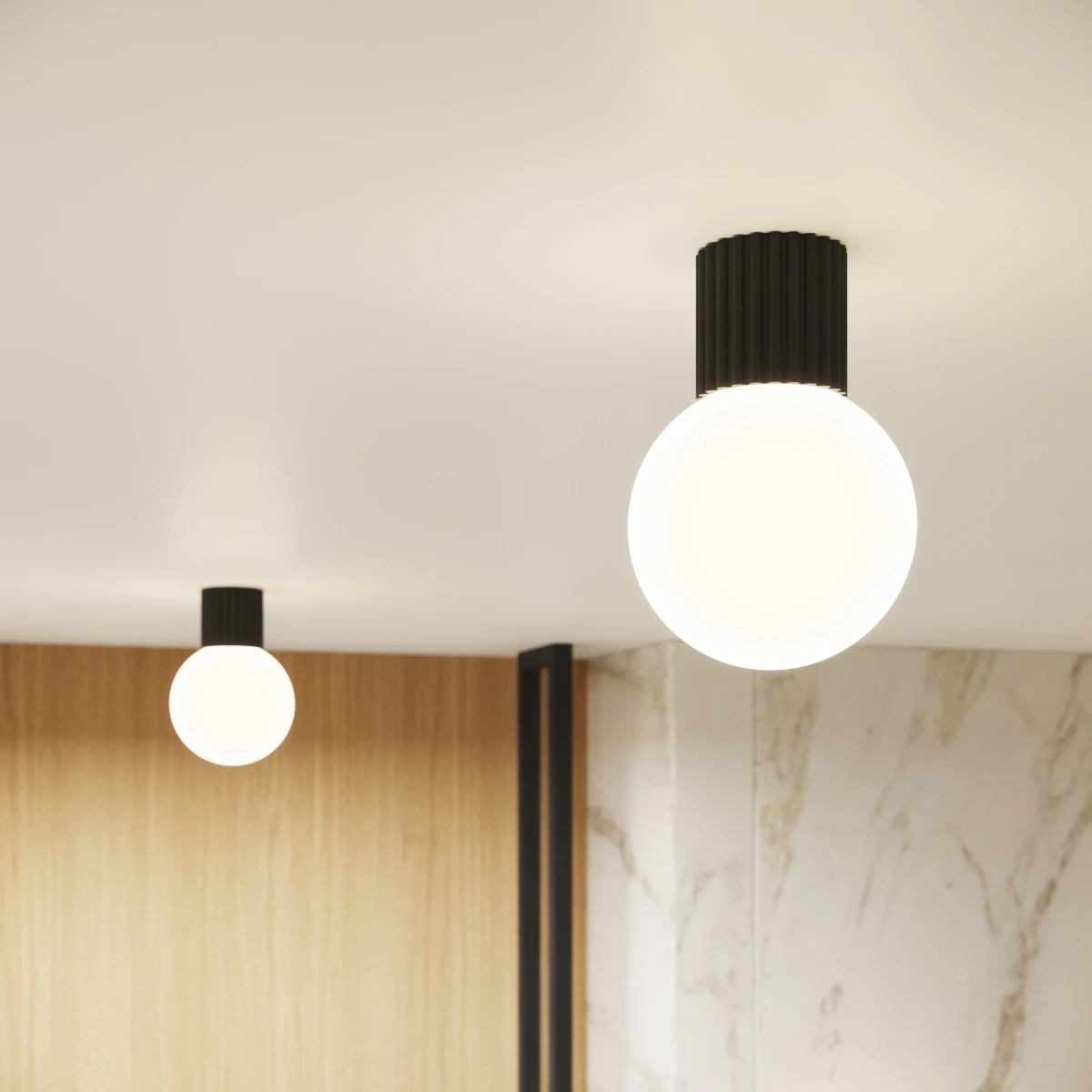 Gracias a la pantalla esférica de cristal de leche, la luz de HALO es suave, uniforme y atmosférica. Es la elección perfecta para lugares donde el ambiente importa: desde dormitorios y salones hasta cafeterías, restaurantes y boutiques. La lámpara resalta suavemente el espacio, creando una atmósfera acogedora sin deslumbrar.