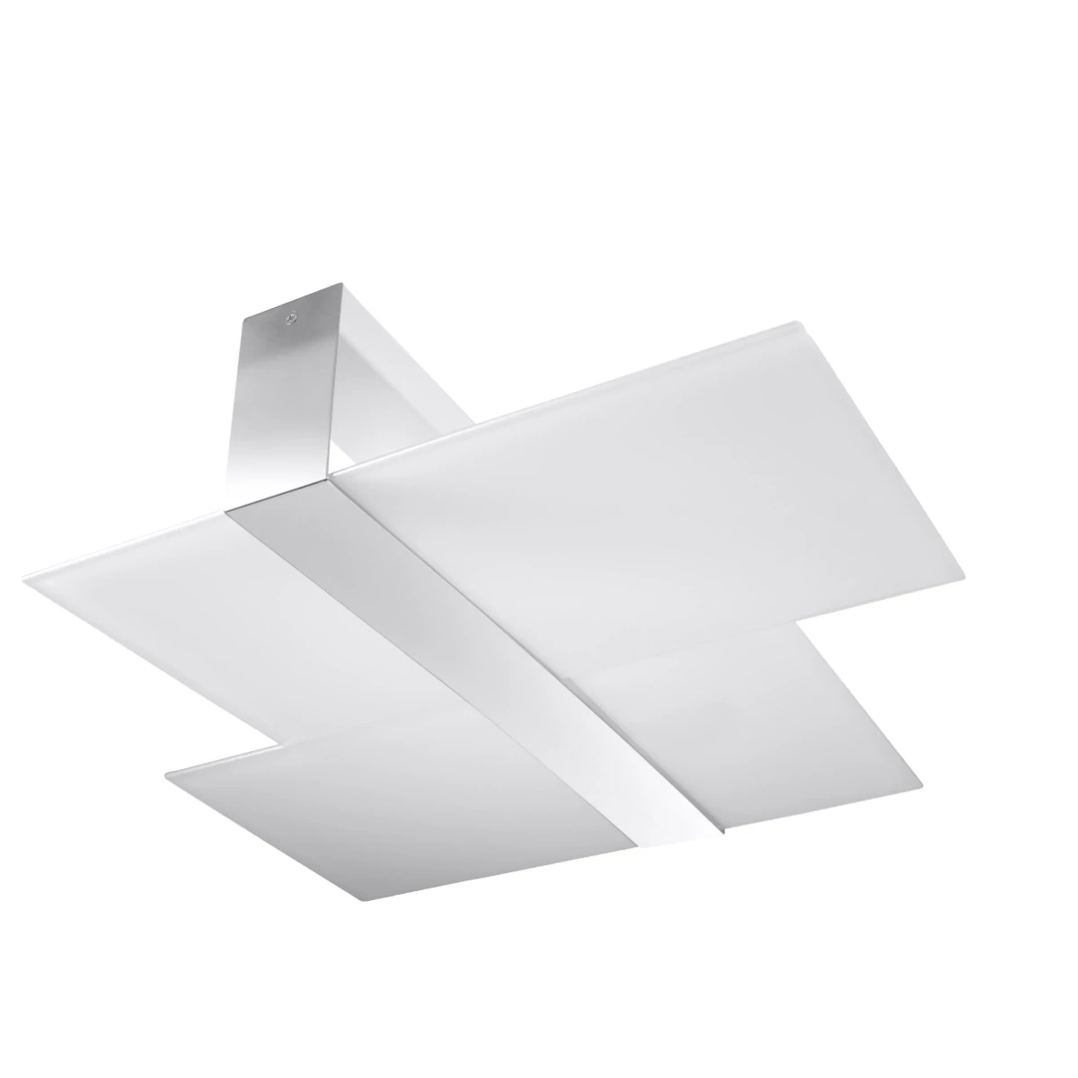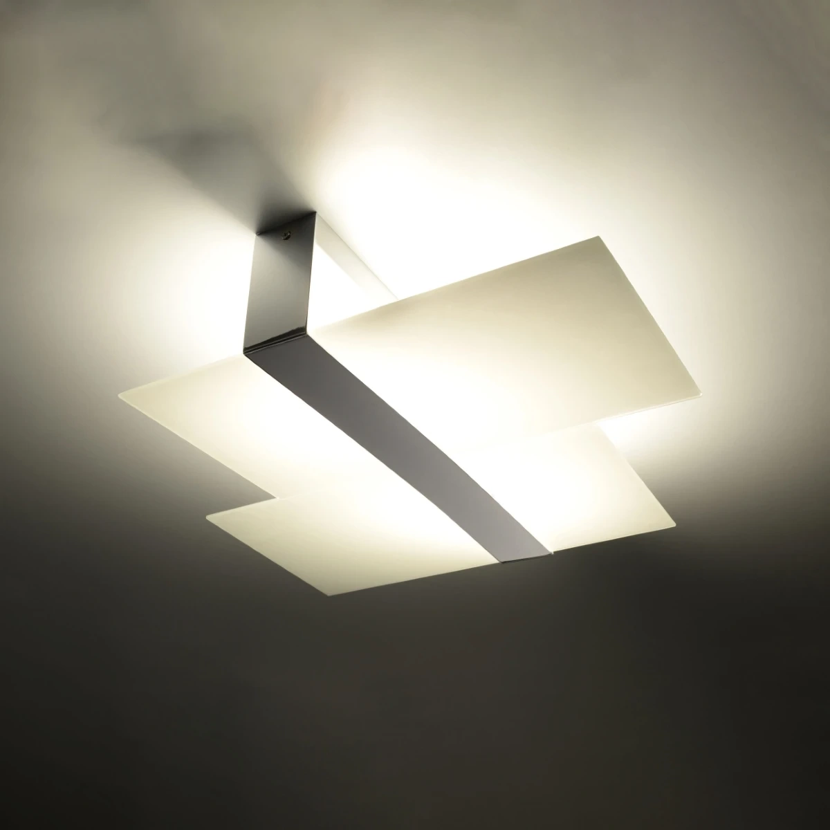 Una funcional lámpara de techo de cristal blanco es una propuesta para interiores modernos y elegantes. La combinación de blanco y acero es una conexión interesante, a veces cruda. Sin embargo, esta impresión desaparece cuando se enciende la lámpara: el cristal blanco resalta maravillosamente la luz, cautivándole con su aspecto.