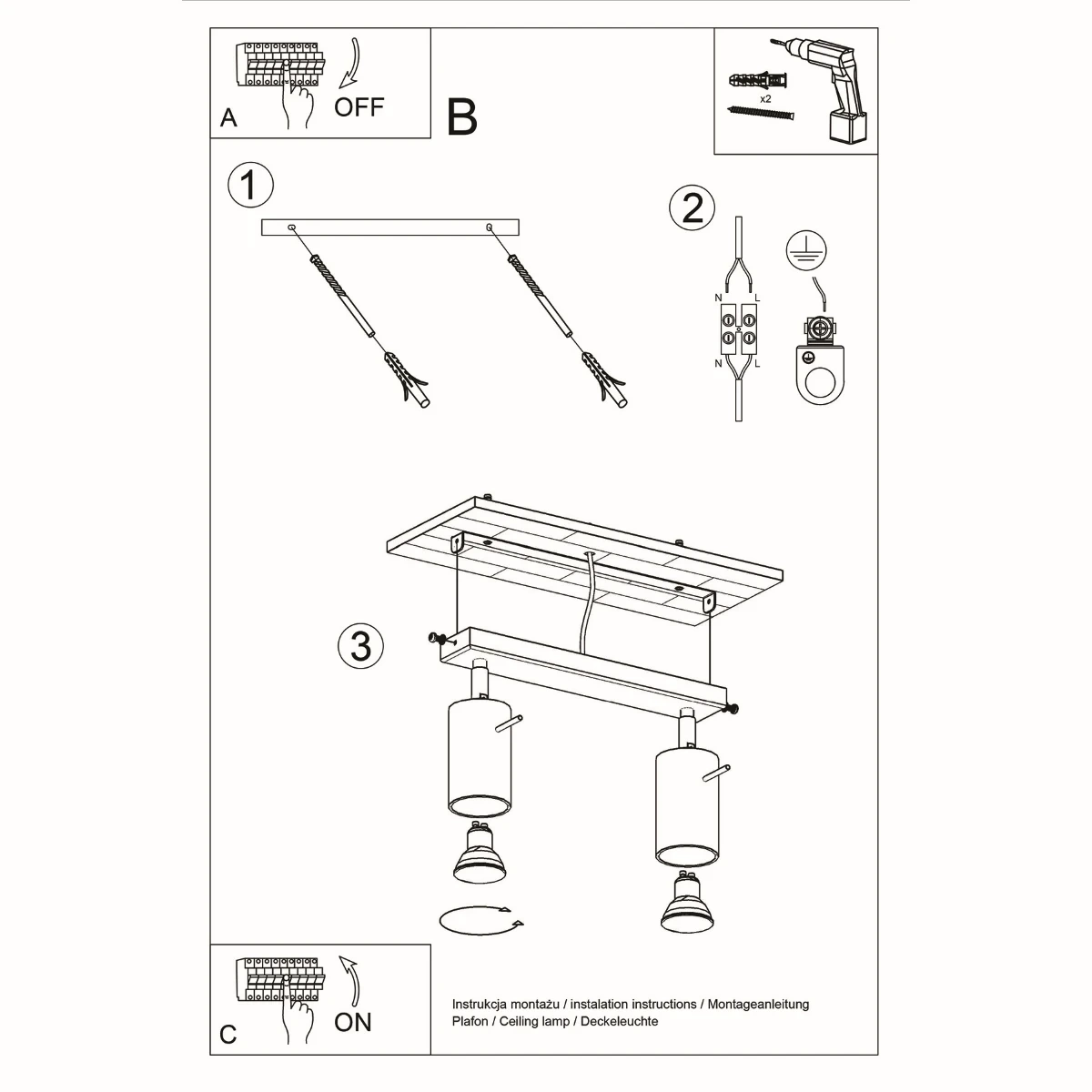 Puede elegir la lámpara de techo de 2 pantallas en 4 versiones de color clásicas: blanco, negro, gris y cromo. Los colores universales encajarán perfectamente en interiores de cualquier estilo: desde loft crudos hasta cálidos climas rústicos.