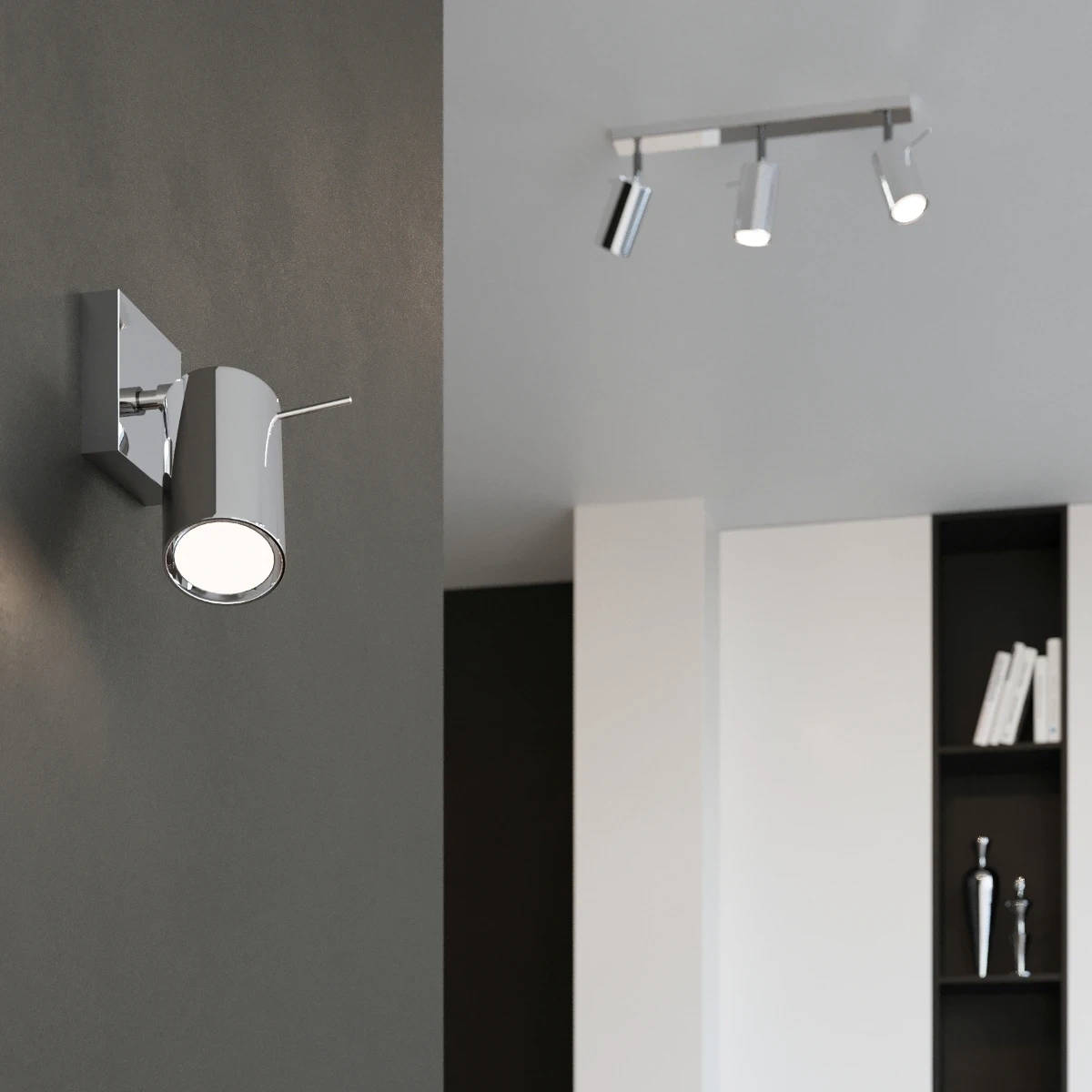Puede elegir la lámpara de techo de 4 pantallas en 4 versiones de color clásicas: blanco, negro, gris y cromo. Los colores universales encajarán perfectamente en interiores de cualquier estilo: desde loft crudos hasta cálidos climas rústicos.