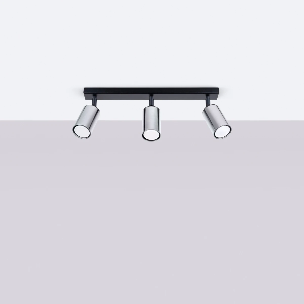 WINX 3 Plafón negro/cromo + 3x bombilla LED GU-10 3000K Cálido 7W 510lm