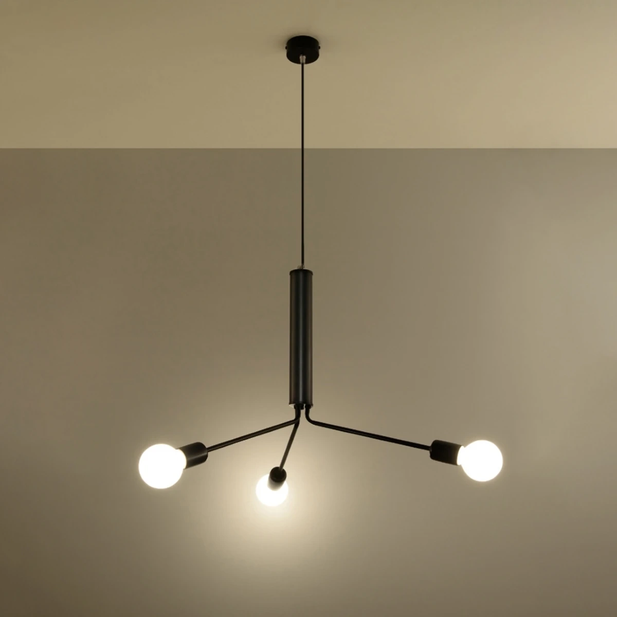 Sin pantallas, acero en bruto y negro impenetrable: ¡una combinación así causa impresión! Los espacios industriales y loft adorarán esta lámpara de techo. Su minimalismo complementa a la perfección el ambiente de las habitaciones de estos estilos crudos, y la luz enfatiza maravillosamente la decoración.