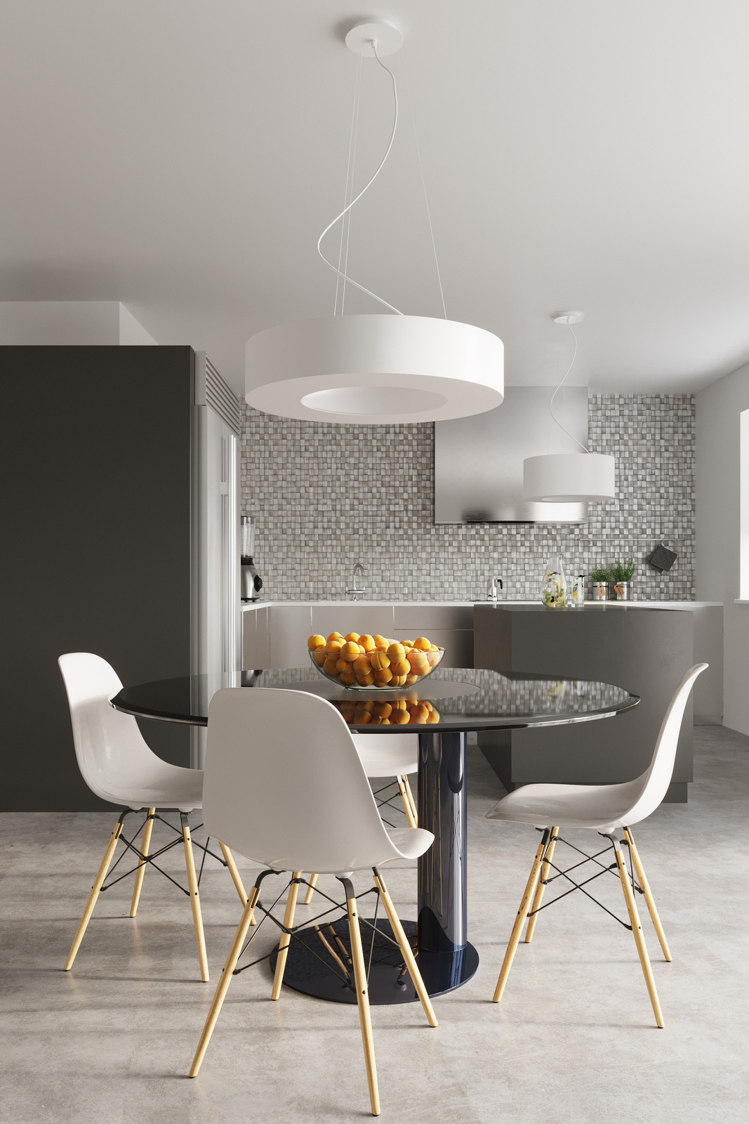 La lámpara SATURNO se adapta a la mayoría de los interiores, sobre todo porque está disponible en blanco y en negro. ¿Prefiere una iluminación suave o un fuerte acento de diseño? Usted elige