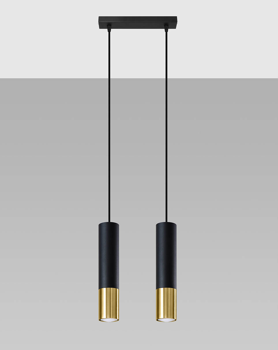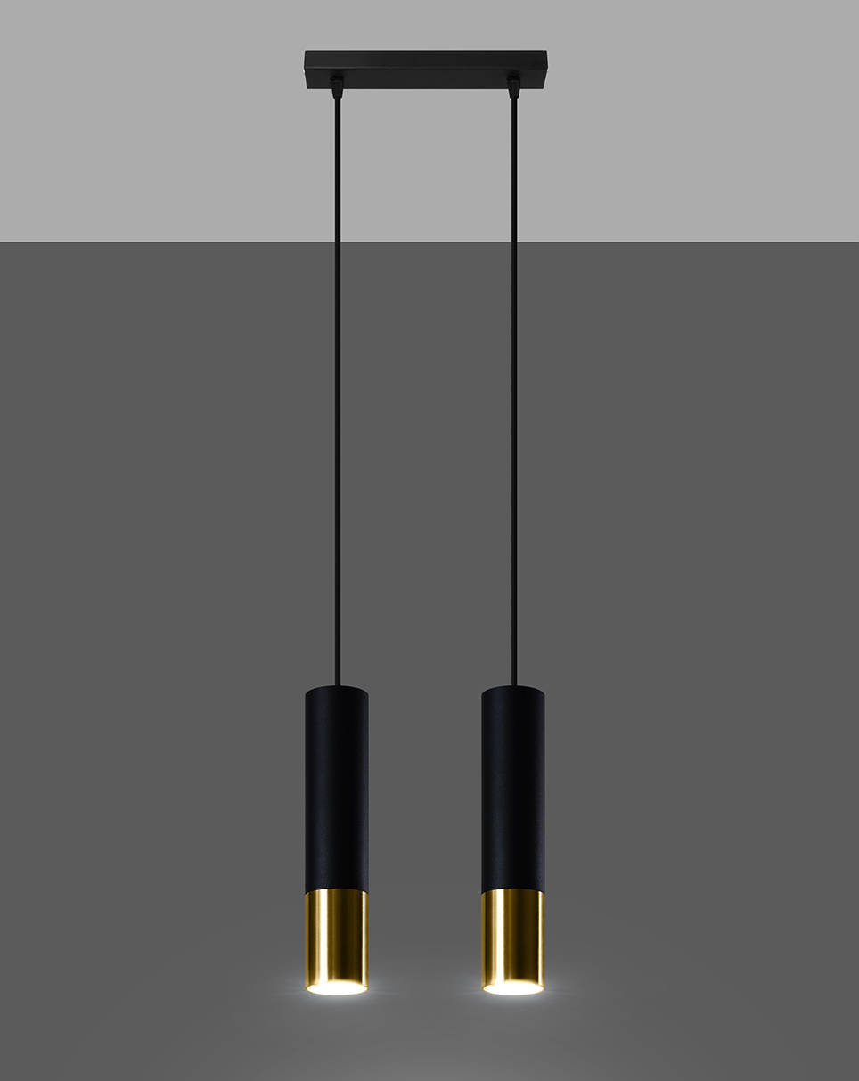 LOOPEZ 2 negro/oro lámpara colgante + 2x GU-10 3000K Cálido 7W Bombilla LED 620lm