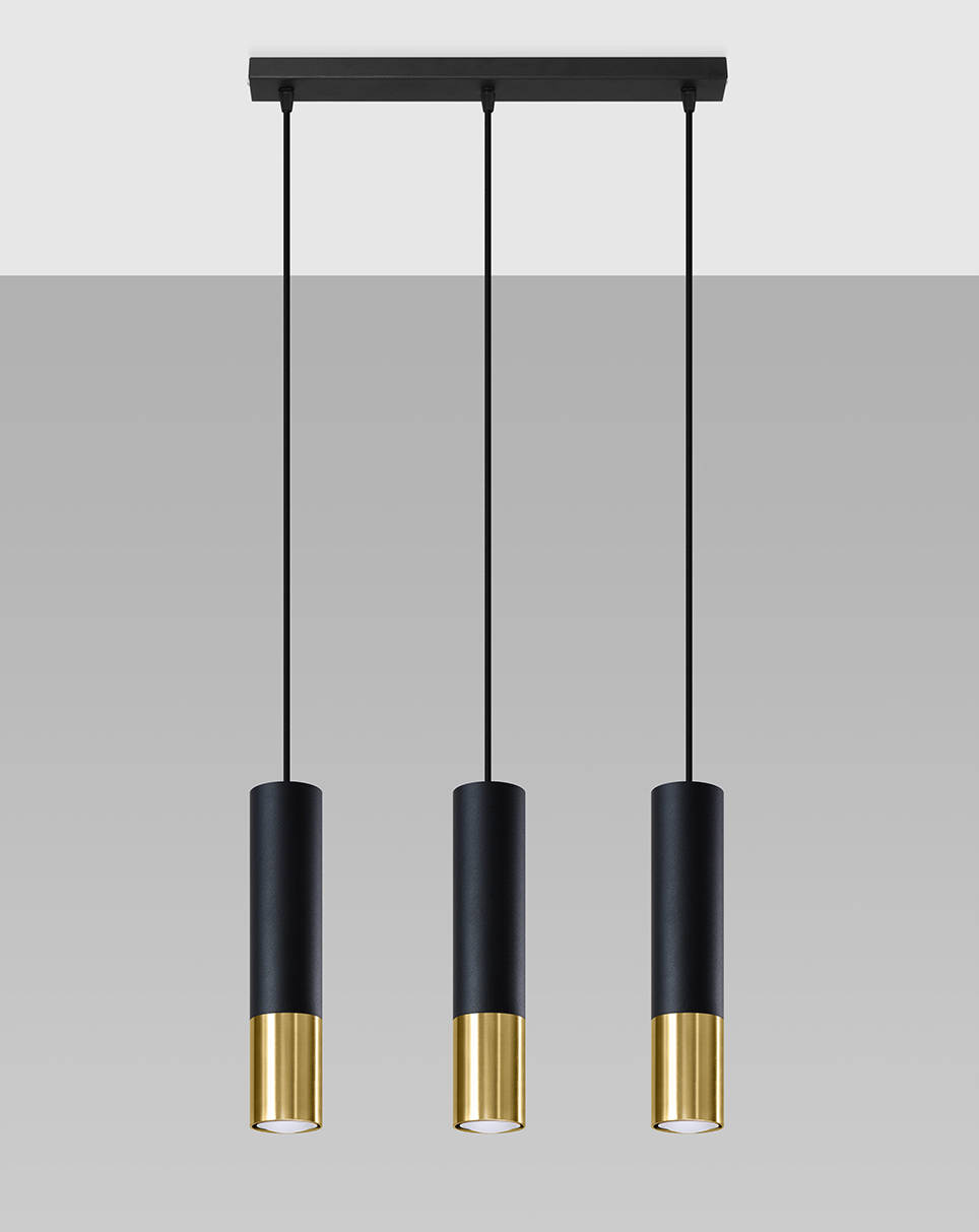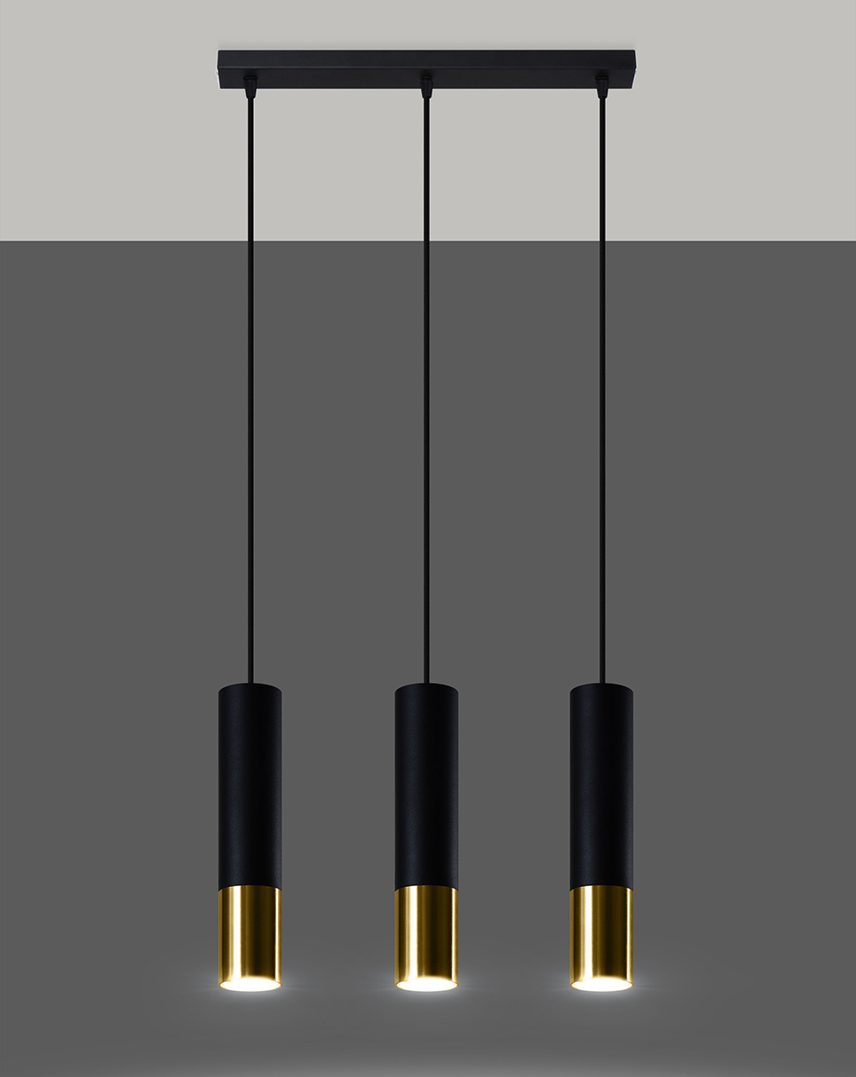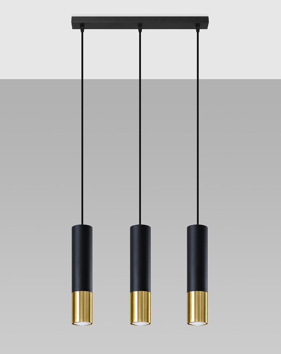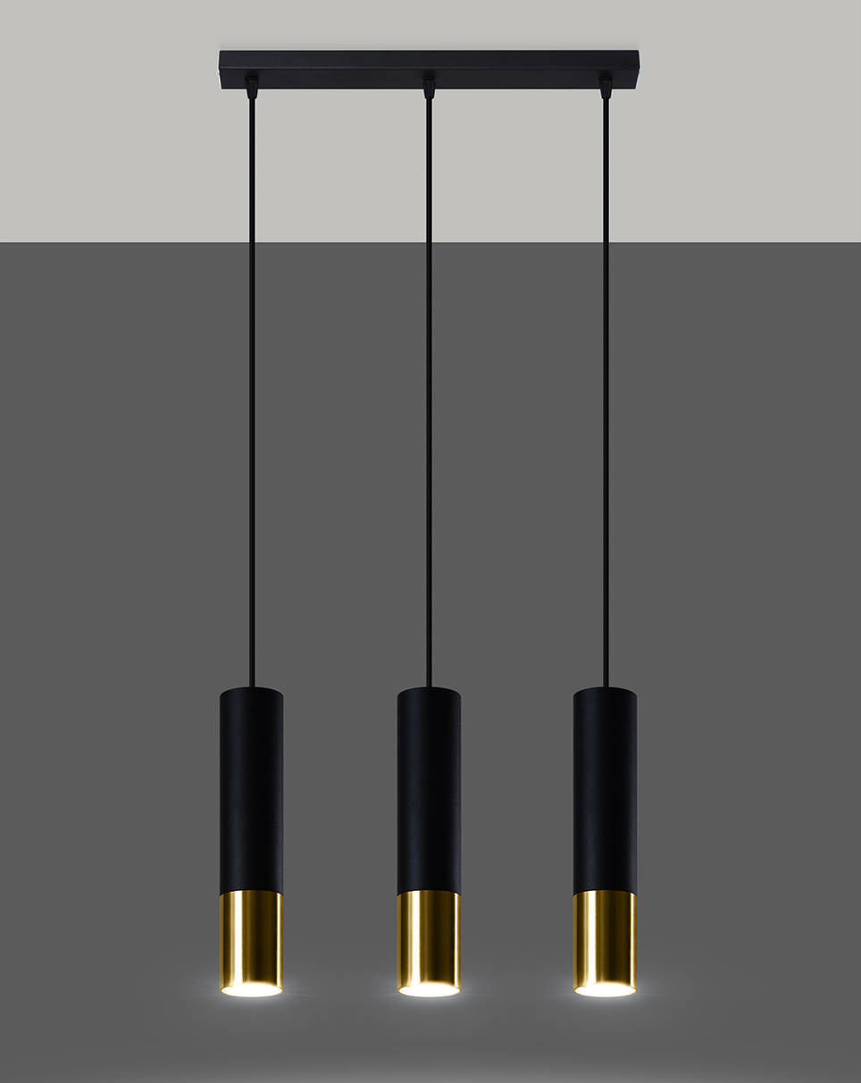 LOOPEZ Lámpara colgante 3L negro/oro + 3 bombillas LED GU-10 4000K frío 7W 630lm