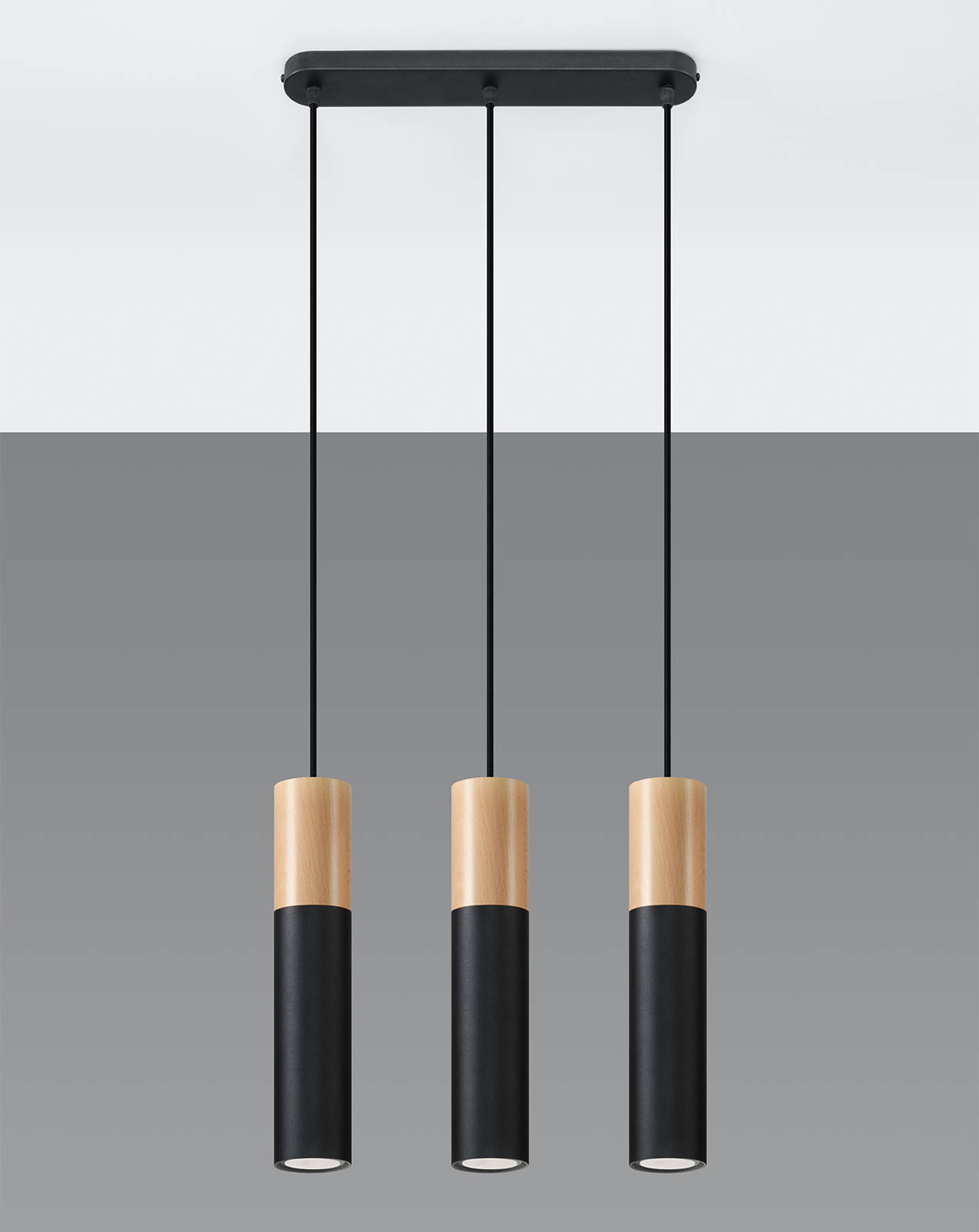 PABLO 3 lámpara colgante negro + 3x GU-10 3000K Cálido 7W LED bombilla 620lm