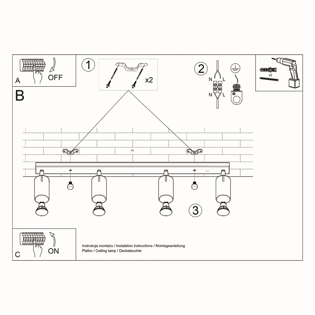 Puede elegir la lámpara de techo de 4 pantallas en 4 versiones de color clásicas: blanco, negro, gris y cromo. Los colores universales encajarán perfectamente en interiores de cualquier estilo: desde loft crudos hasta cálidos climas rústicos.