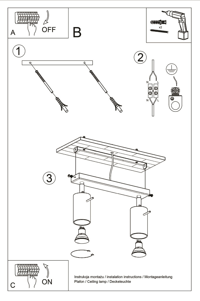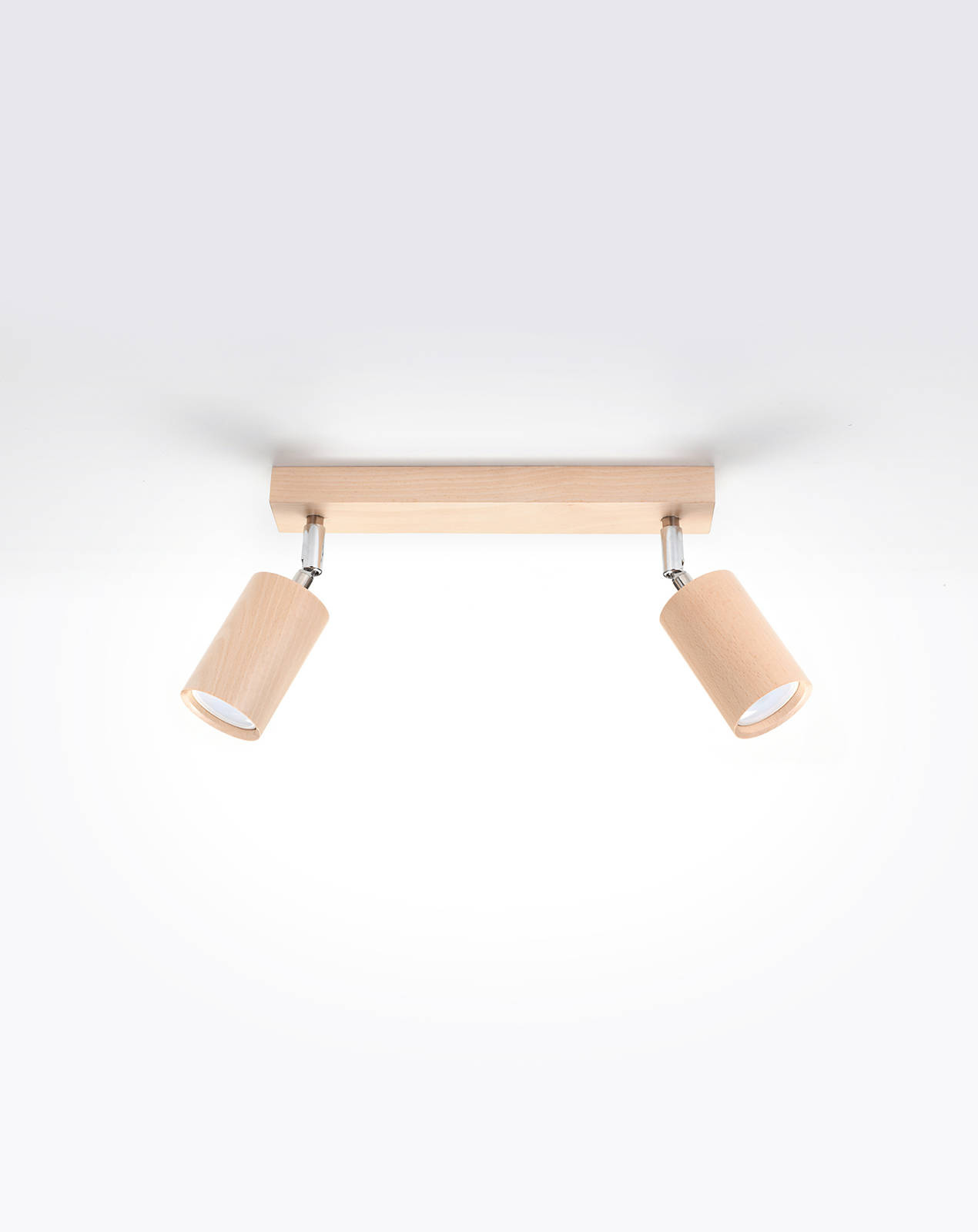Plafond BERG 2 madera natural + 2x bombilla LED GU-10 4000K Fría 7W 630lm