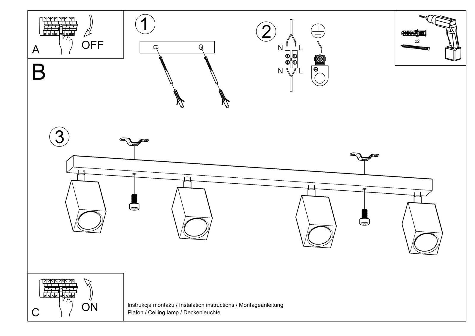 Plafond KEKE 4 roble + 4x bombilla LED GU-10 4000K Fría 7W 630lm