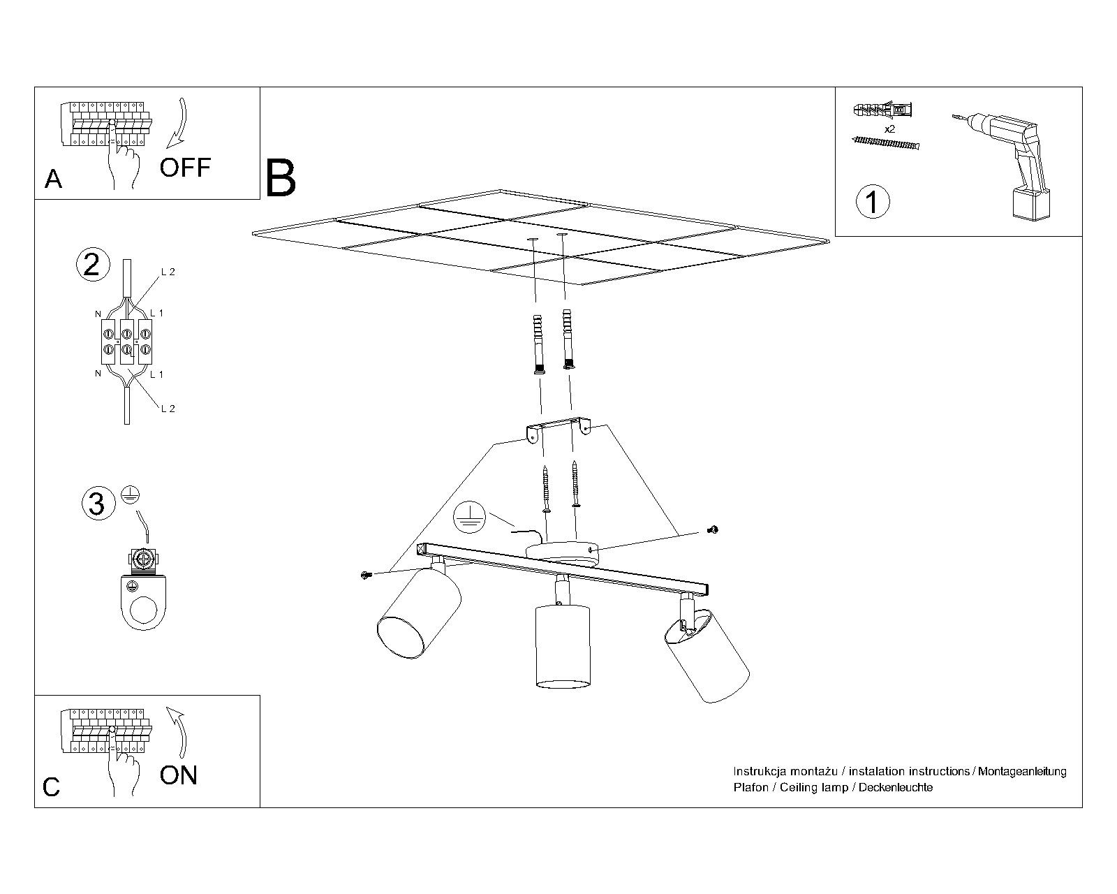Plafond LEMMI 3 blanco + 3x Bombilla LED GU-10 3000K Cálido 7W 510lm