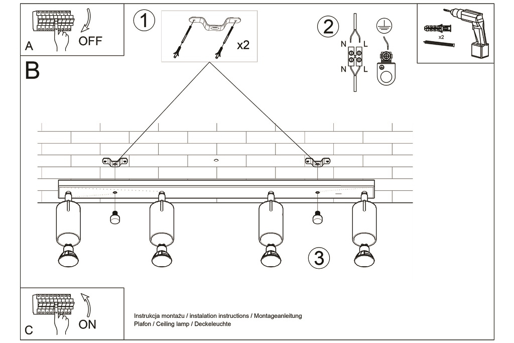 Lámpara de techo NERO 4 negro/cromo
