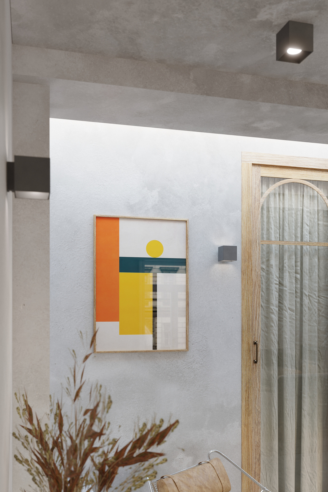 Puede pedir el modeloQUAD no sólo en 3 versiones básicas de color, sino también en hormigón - para un ambiente industrial, o en un marco de madera natural - para cálidos interiores escandinavos o rústicos. Gracias a su pequeño tamaño, puede crear una composición única de varias lámparas.